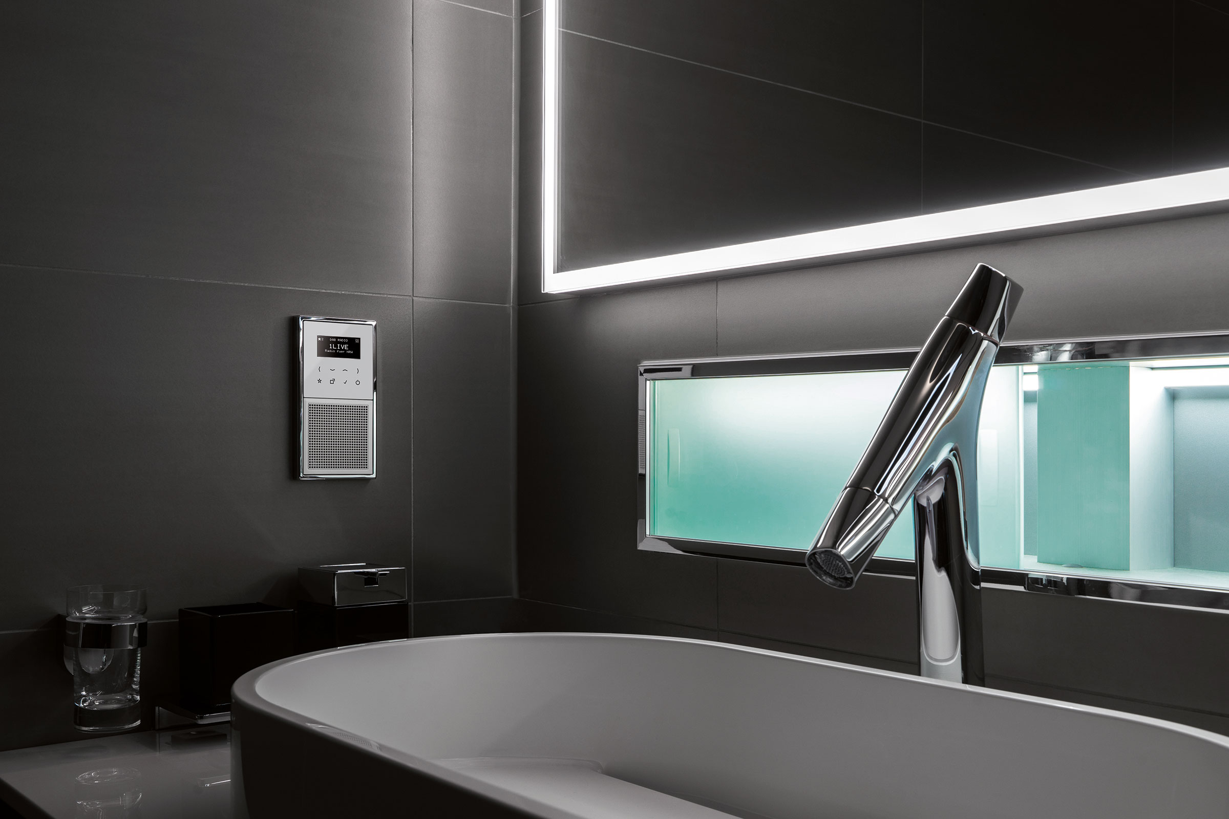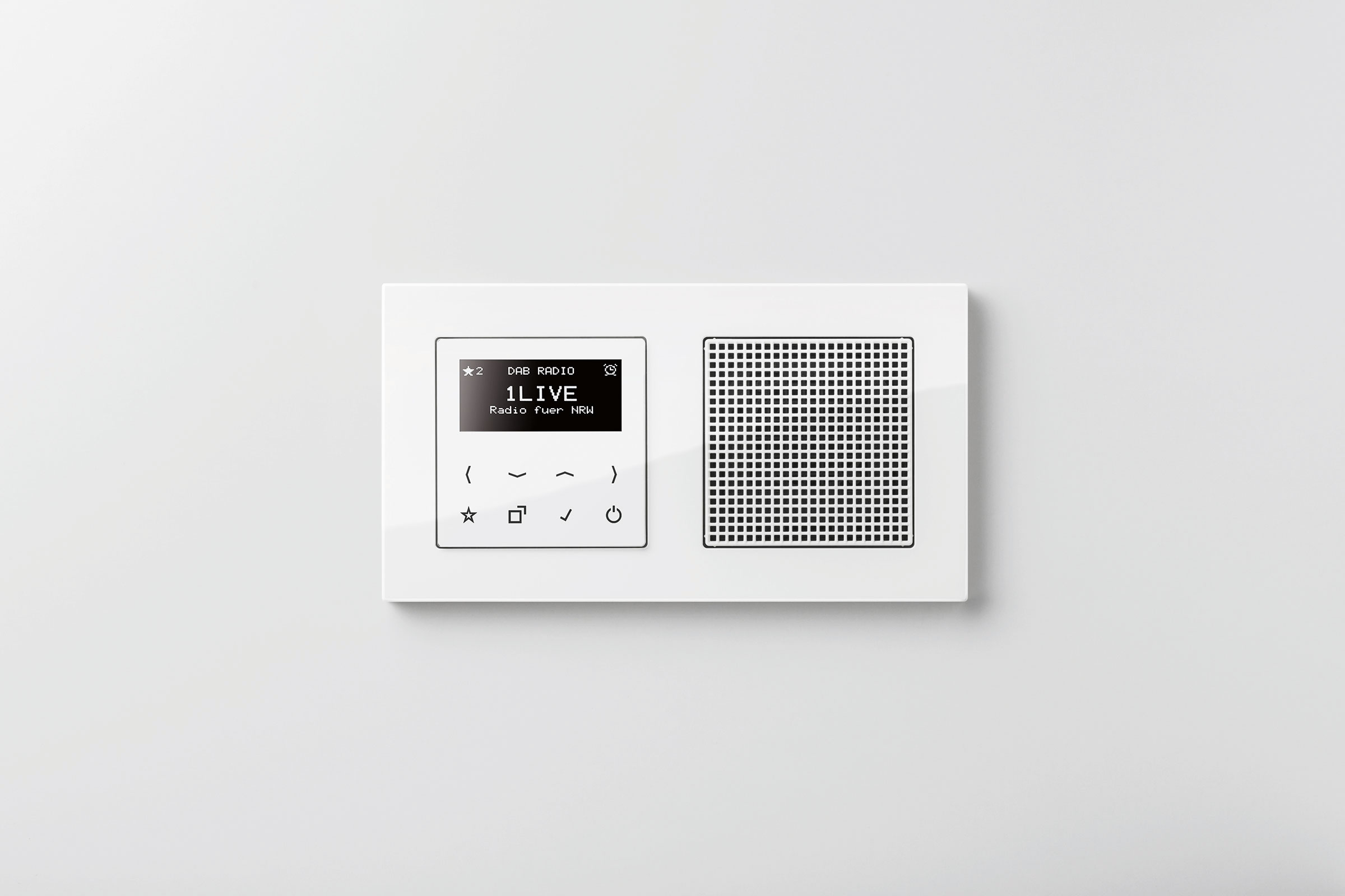 Smart Radio DAB+ de Jung ofrece un sonido rico en matices y un diseño atractivo que armoniza con cualquier decoración. Con un elegante frontal de cristal sensitivo, se presenta en una gran variedad de colores y acabados: la atemporal serie LS 990 —en plástico y exclusivas variantes de metal—; la moderna A Creation —con colores en cristal o plástico—; y la armoniosa CD 500, que ofrece una gran variedad de configuraciones gracias a sus cinco colores y a los dos tonos de aluminio anodizado disponibles. Además, todos los elementos (radio, Bluetooth Connect y altavoces) pueden montarse en horizontal o vertical, así como en un único marco múltiple o separados individualmente. En cualquier caso, la integración con la serie elegida de mecanismos eléctricos proporciona uniformidad de diseño, pero también funcionalidad. Es decir, si Smart Radio DAB+ está conectada a la iluminación de la estancia, puede encenderse y apagarse cómodamente junto con esta.